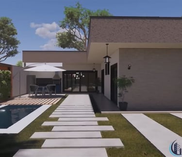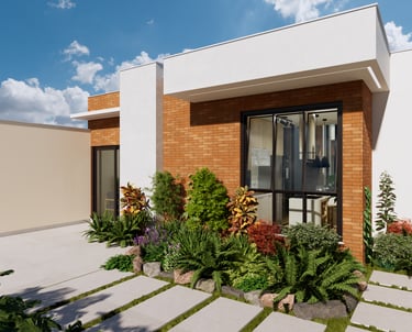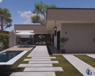 Casa em L com Telhado Aparente Muito Aconchegante, com 3 Quartos 12x20m .cód139A