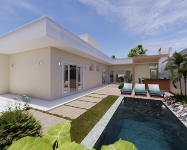 Casa em L com Sala e Cozinha Integrada com 3 Quartos e 3 Banheiros 12x30m .cód216A